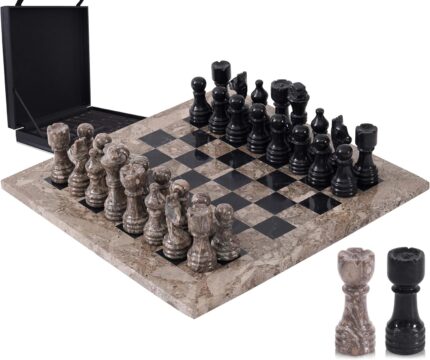 Marble Chess Set 12″ Inches Oceanic and Black Handmade Chess Sets for Adults – Marble Board Game for Family with Storage Box & 2 Extra Queen, Ideal Travel Chess Set & Home Décor