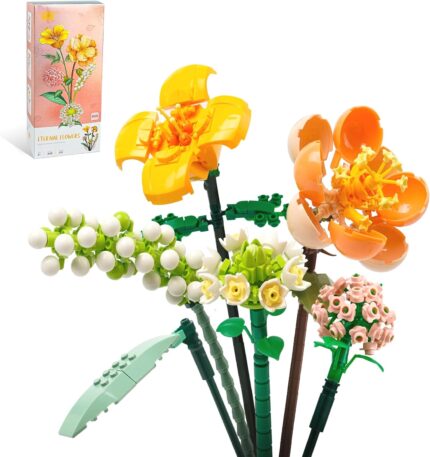 SANCO Artificial Flowers Building Set – Mini Bricks Flower Bouquet, Unique DIY Decoration Home, 456 Pieces Botanical Collection for Kids and Adults Birthday Valentine’s Day Gift