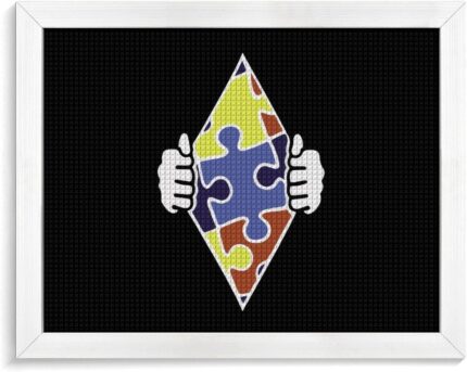 Autism Superhero Decorative Diamond Painting Kits with Frame 5D DIY Full Drill Rhinestone Art Pictures Home Decor White Wood 50 * 40cm