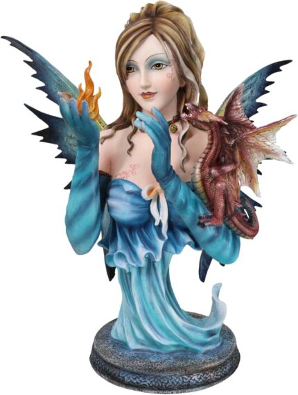 Ebros Gift Large 14.25″ Tall Enchanted Fairy Garden Ice Elemental Faerie Controlling Ember with Red Fire Dragon Torso Bust Figurine Home Collectible Fairies Elf Nymph Pixies Fantasy Decor Statue