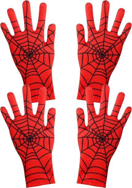 Geyoga 2 Pairs Spider Web Gloves Halloween Spider Gloves Red and Black for Halloween Masquerade Homecoming Cosplay