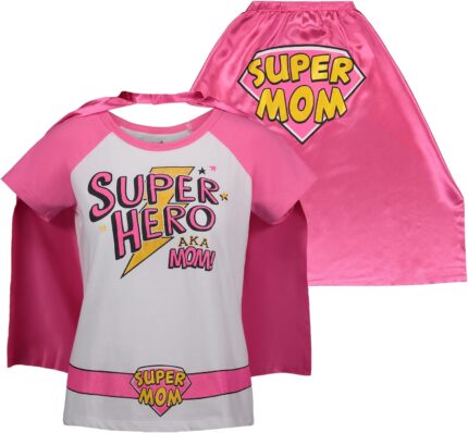 Funstuff Mothers Day Super Hero Mom Women’s Pullover Costume T-Shirt and Cape Adult