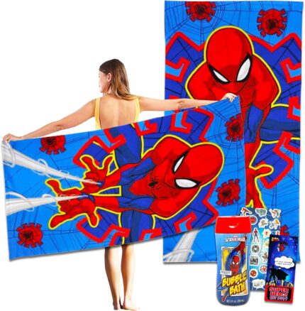 Spiderman Beach Towel Set – Bundle of a 40″ x 72″ Spiderman Beach Towel with Stickers and More | Marvel Beach Accessories