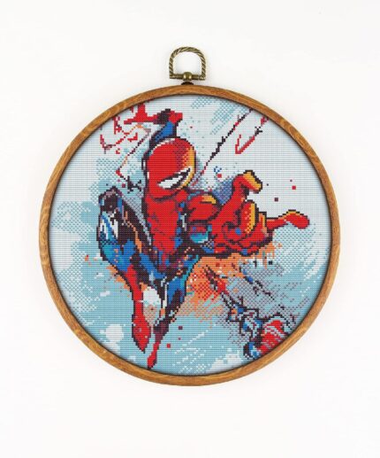 Spiderman K388-0 Counted Cross Stitch KIT#3. Threads, Needles, Fabric, Embroidery Hoop and Printed Color Pattern Inside. Embroidery Pattern
