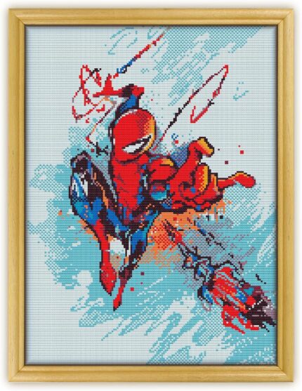 Spiderman K389 Counted Cross Stitch KIT#2. Threads, Needles, Fabric, Clippers, Needle Threader and Printed Pattern Inside. Embroidery Pattern Kit