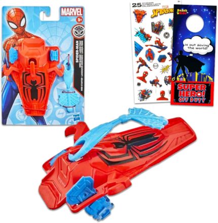 Spiderman Web Shooter Weapons for Kids – Bundle with Spiderman Wrist Blaster Shooter Plus Stickers, More | Spidey Gift Set for Boys