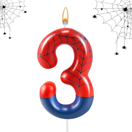 Spider Themed Birthday Candles Number 3 Candle Birthday Cake Candle Party Decoration Cake Topper for Spider Party Decoration Theme Party Supplies (Number 3)