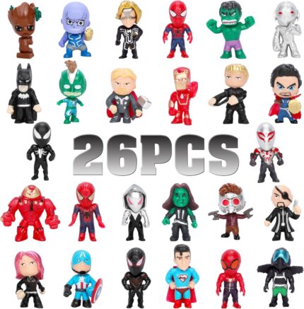 Genqiang Mini Superhero Toys, 26 pcs Superhero Minifigures Small Action Figures Superhero Party Birthday Decorations for Kids’ Christmas Stocking, Easter Eggs Cake Toppers Collectibles