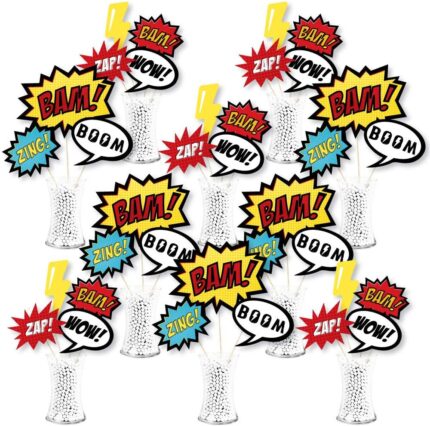 Big Dot of Happiness Bam Superhero – Baby Shower or Birthday Party Centerpiece Sticks – Showstopper Table Toppers – 35 Pieces