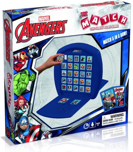 Top Trumps Marvel Avengers Match Board Game, Play with Captain America, Iron Man, Black Widow, Thor and Loki, educational travel game, gift and toy for boys and girls aged 4 plus