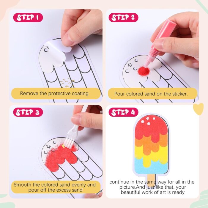 Summer Treat Theme Gifts: the DIY summer treat sand art paintings are rich in quantity and exquisite in patterns, which are suitable for children to color together; They can be given as dedicated small gifts to friends and family; The small gifts made by hand are thoughtful and good as a gift choice