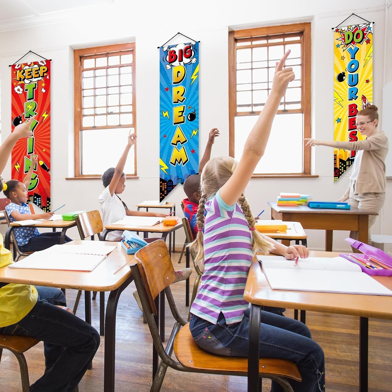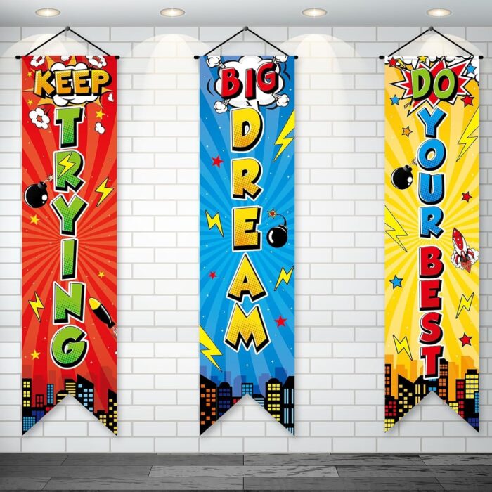 Package includes: Our powerful hero banner decorations include 1 piece “keep trying” wall banner, 1 piece “big dream ” decorations backdrop, 1 piece “do your best” hanging porch decoration. Each hero wall signs measure about 47.2 x 11.8 inches/ 120 x 30 cm, which have suitable size and enough quantity can decorate your party well.