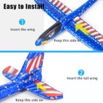 𝟰 𝗣𝗮𝗰𝗸 𝗔𝗶𝗿𝗽𝗹𝗮𝗻𝗲 𝗧𝗼𝘆𝘀: The toy airplane for boys contains 4 colorful planes, 14.5 inch/37cm. This foam airplanes consists of the fuselage and two wings which is easy to install and disassemble, just insert the wing and tail to the right place, keep throwing upward or horizontally angle, you will be allowed to enjoy the interesting flying game immediately