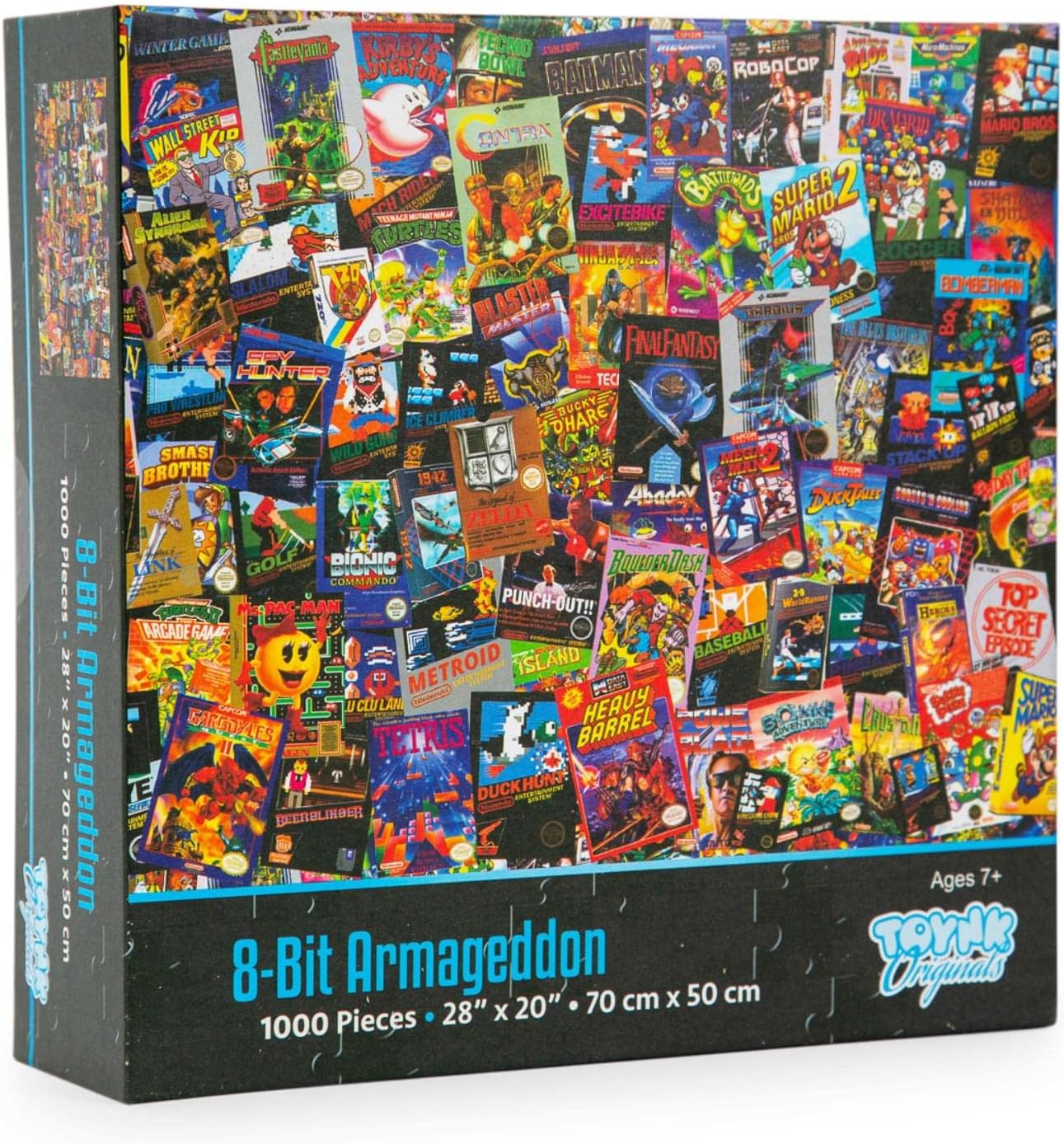 1000 Piece Puzzle: Enjoy hours of entertainment with this fun-filled Retro Video Game Puzzle. To keep everything organized, the jigsaw pieces are secured inside a bag and packaged in a full-color box that shows the finished image for solving.