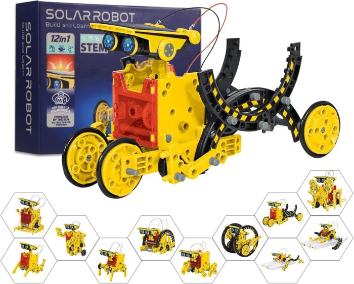 【Robot toys for kids 8-12】 12 different robots can be built and can operate on land and water. All robots can use green energy – solar energy as energy, and do not need batteries to operate in the sun. If there is no sunlight, batteries can also be used as an alternative energy source.