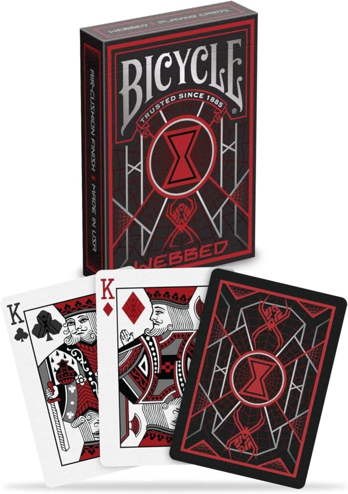 ABOUT THE CARDS | Spider themed playing cards, this ‘Webbed’ deck features standard index playing cards with a black, red, and white card back.
