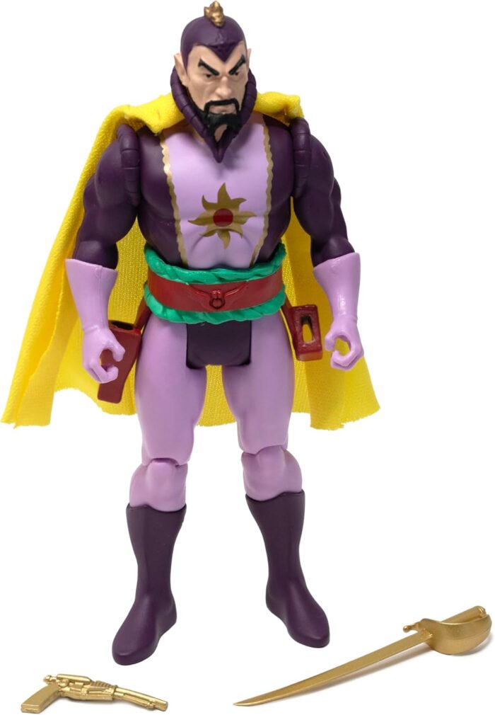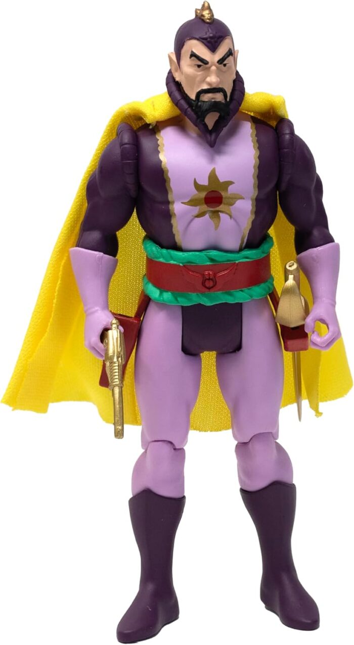 Original Supervillain: Blasphemous, tyrannical, and ruthless, Ming the Merciless lives up to his name as the ruler of Mongo, and serves as Flash Gordon’s archenemy; outfitted in his classic suit with a stylish fabric cape, Ming comes with a sword and blaster, which fit into his belt and hands