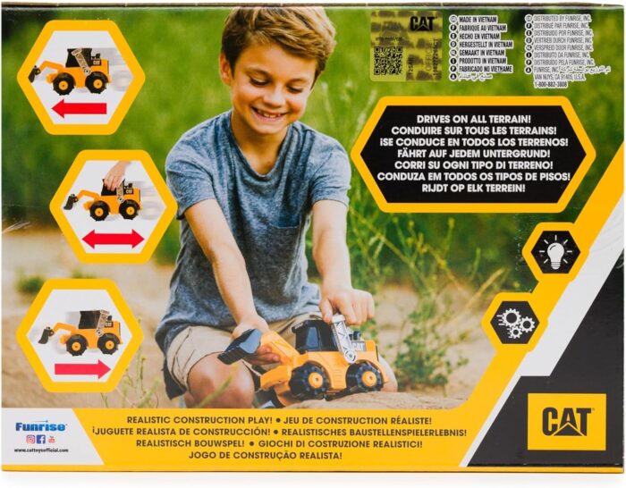 The Unstoppable Front Loader: No adventure is too challenging for the CAT Unstoppable Movers Front Loader! Featuring stabilizing wheels, four-wheel drive, moving bucket and working lights, it brings all the excitement of the construction site to life!