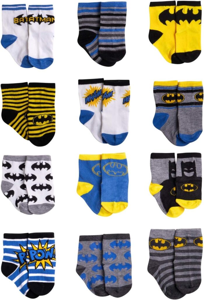 Keep him warm and stylish with a playful 12-Pair Socks Set featuring popular DC Comics superheroes.