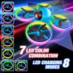 【What you Get】: Come with 2 drone batteries in the package, your flight time is prolonged up to 20 Minutes, allows players to have more time for fun. The portable small flying toys mini drones includes:1X LED Drones, 4 spare propellers, 2 USB charging cables and 1X drone remote control, 1XUser Manual, realy nice gift for kids, beginners, adults.
