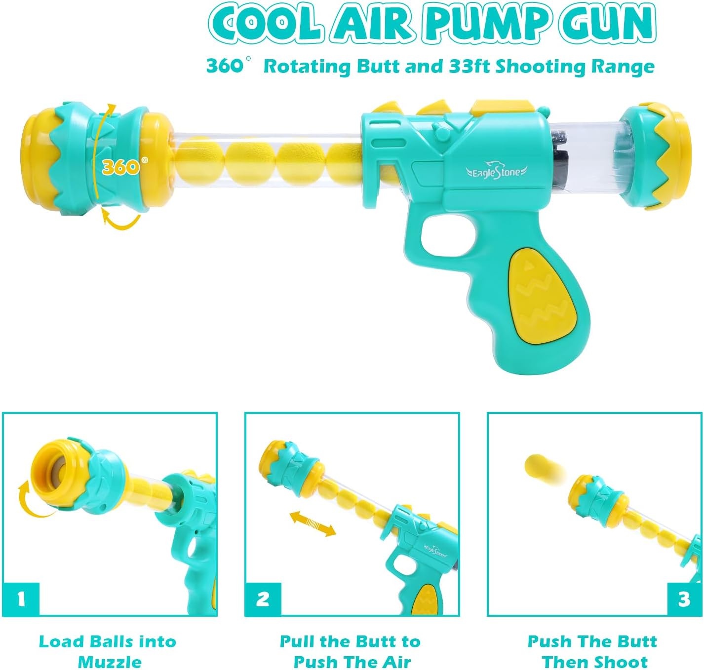 Safe Kids Toy: Your child’s safety is our top priority: The air pump guns are made from eco-friendly ABS materials, and the all-round design ensures a secure shooting experience. The lightweight and harmless EVA foam balls collect inside the dinosaur’s belly, making recycling a breeze and causing no harm to anyone or anything.