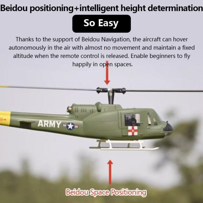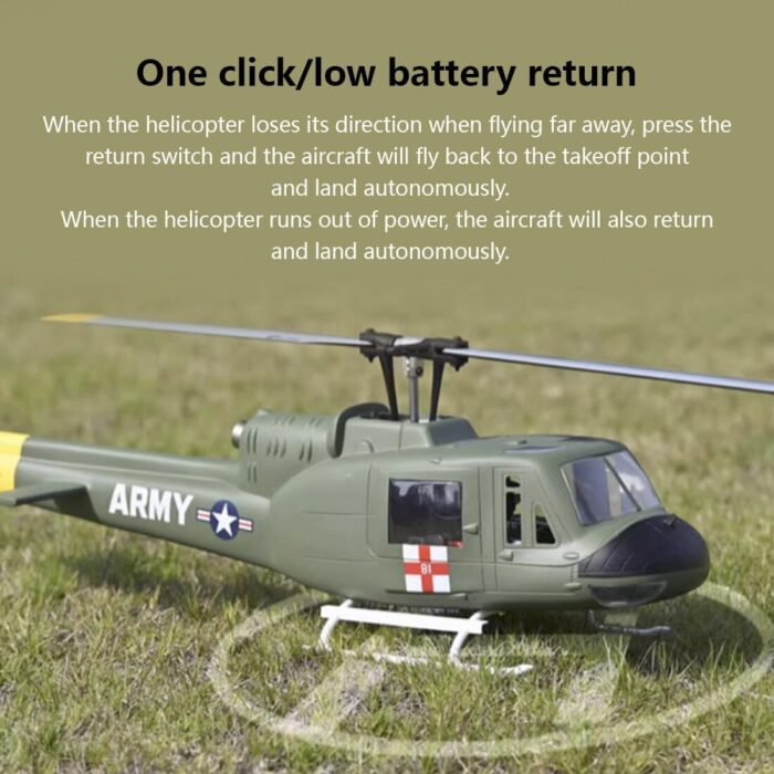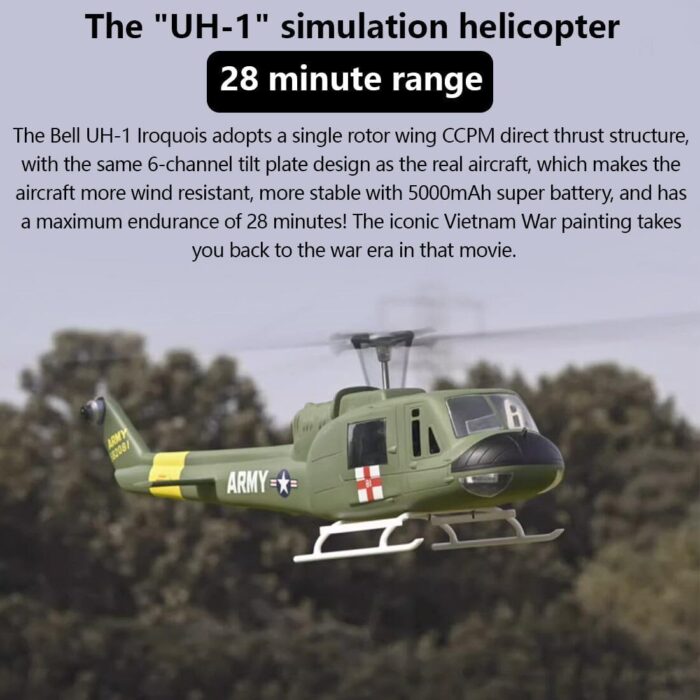 🌺The realistic 470-class UH1 Huey V3 6CH RC helicopter model equipped with a high-power 16V motor for easy maintenance. Comes with the H1 flight control system featuring omnidirectional positioning technology and BeiDou satellite positioning system, allowing for point-to-point hovering in forward/backward flight.
