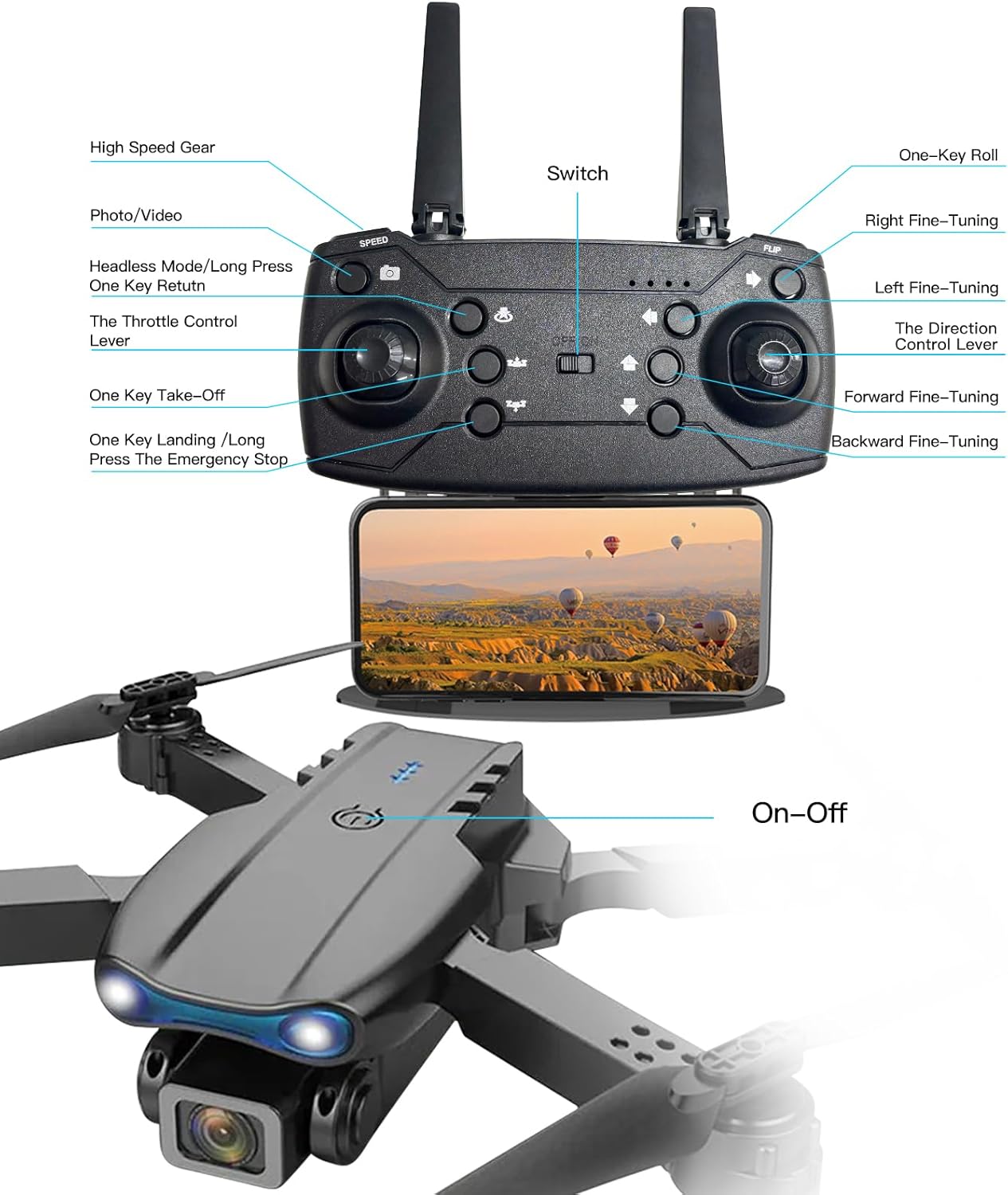 Advanced Safety Features for Beginners:Featuring headless mode, altitude hold, and one-key takeoff/landing, this drone ensures easy control and confidence for newcomers, enabling impressive maneuvers.
