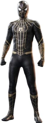 1:6 Spider-Man (Black & Gold Suit) The friendly neighbourhood superhero has continued to share new looks in multiple movie appearances and got fans amazed with his upgraded gadgets. To prepare fans for the Spidey’ return, Hot Toys are ecstatic to introduce Spider-Man and his new Black & Gold Suit, one of the new suits that will be seen in the movie, as sixth scale collectible figure ahead of the release of Spider-Man: No Way Home. Expertly crafted based on the appearance of Tom Holland as Peter Parker in the movie, the latest Spider-Man figure features a newly painted head sculpt, a masked head sculpt with multiple pairs of interchangeable Spider-Man eyepieces to create numerous Spider-Man’s expressions, a beautifully designed Black and Gold Suit with detailed web patterns, a selection of highly detailed accessories including a gauntlet, mystic spider-web effects, a Spider-Man mask, assorted spider-web shooting effect parts, and a themed dynamic figure stand. The Spider-Man (Black & Gold Suit) Sixth Scale Collectible Figure features: Authentic and detailed likeness of Spider-Man wearing Black & Gold Suit in Spider-Man: No Way Home One newly painted head sculpt with authentic likeness of Tom Holland as Peter Parker One interchangeable masked head sculpt with five (5) pairs of interchangeable Spider-Man eyepieces that can create numerous combinations of Spider-Man’s expressions Body with 30 points of articulation Approximately 28.5 cm tall Ten pieces of interchangeable hands with web patterns Each head sculpt is specially hand-painted One finely tailored black, gold, and red-colored Spider-Man Suit embossed with grayish black trims, web pattern, and gold spider emblem on chest One pair of black, gold-colored boots embossed with grayish black web pattern One gauntlet (wearable on left arm) One mystic spider-web effect, attachable to the gauntlet One circular-shape mystic art effect, attachable to chest (equipped with magnetic function) One Spider-Man mask (not wearable on figure) Six strings of spider web in different shapes and lengths, attachable to the web-shooters One open spider web effect accessory A dynamic figure stand with character nameplate and the movie logo
