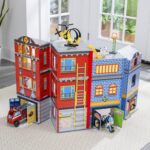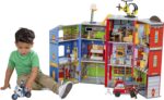 Help is on the way with the KidKraft Everyday Heroes Wooden Playset. Kids will have five-alarm fun with this three-level wooden fire house that opens up for expanded play. A total of 12 themed rooms and a roof-to-floor fire pole are guaranteed to boost children’s imaginations as they explore what it means to be a real-life hero. The included 26-piece accessory kit features a police motorcycle, fire truck, fire dog and more. Land the helicopter on the helipad on the rooftop. A firefighter and police officer have bendable arms and legs, so they more easily fit on the vehicles and add action to the play. When playtime is done, the set folds closed on sturdy hinges to make cleanup easy.