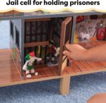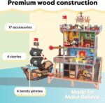 FULLY STOCKED: Wooden pirate ship and 4-story hideout is full of adventures for kids. 17 accessories are included to role play in the lookout tower, jail and fort.