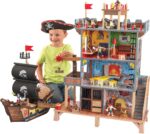 Our KidKraft Pirates Cove Play Set includes everything young imaginations need to embark on grand sea adventures. The fully-outfitted four-level pirate hideout features a jail cell that opens and closes, a light-up treasure chest, a rope ladder and a pair of cannons with lights and sound. A working crane can transfer cargo to the included pirate ship with fabric sails and a bendable pirate captain and his crew. This set is large enough for multiple kids to play at once, features 17 accessory pieces and sturdy wood construction for years at sea. Ahoy, mateys!