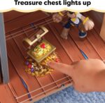 LIGHTS & SOUNDS : The treasure chest glows when the button is pressed to make it easier to spot. There are also two realistic firing cannons with light and sound.
