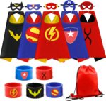 Kids Superhero Capes Set Costume with Wristbands Toys for Birthday Party Christmas (5PCS Kids Superhero Capes)