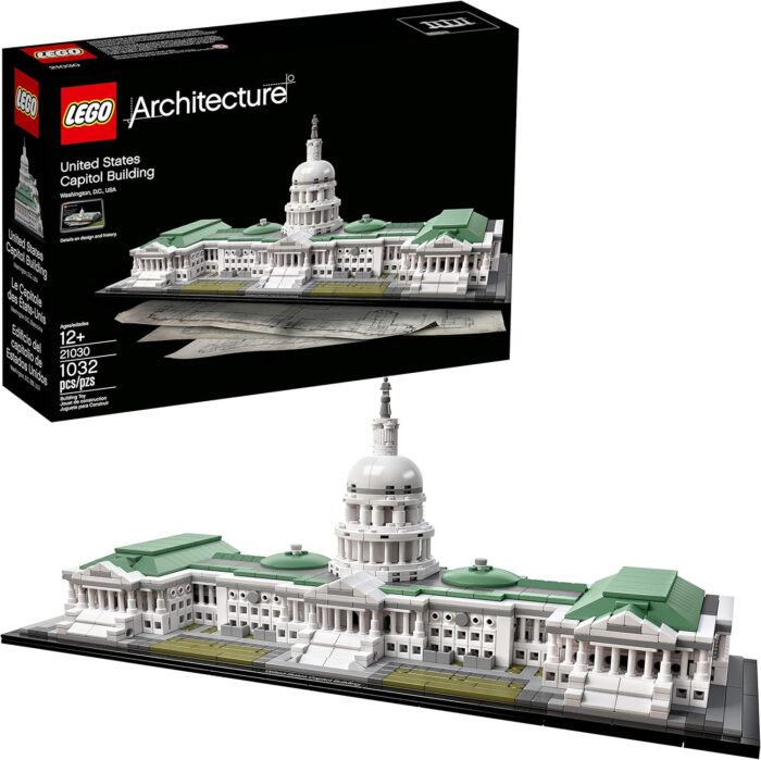 Build a LEGO brick model of one of the world’s most architecturally impressive and symbolically important structures. Located in Washington DC, the United States Capitol is a magnificent example of neoclassical architecture covering more than 1.5 million square feet and with over 600 rooms and miles of corridors. The building that we see today is the result of several major periods of construction that have taken place since president George Washington first laid the cornerstone on September 18, 1793. With over 1,000 building blocks, this meticulously detailed LEGO Architecture interpretation of the U.S. Capitol focuses on the structure’s striking white, columned facade with its famous steps and lawns, and features a removable dome for access to a detailed interior depicting the famous National Statuary Hall, complete with columns, statues and tiled floor.