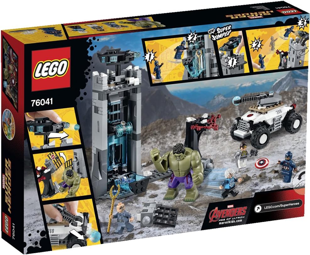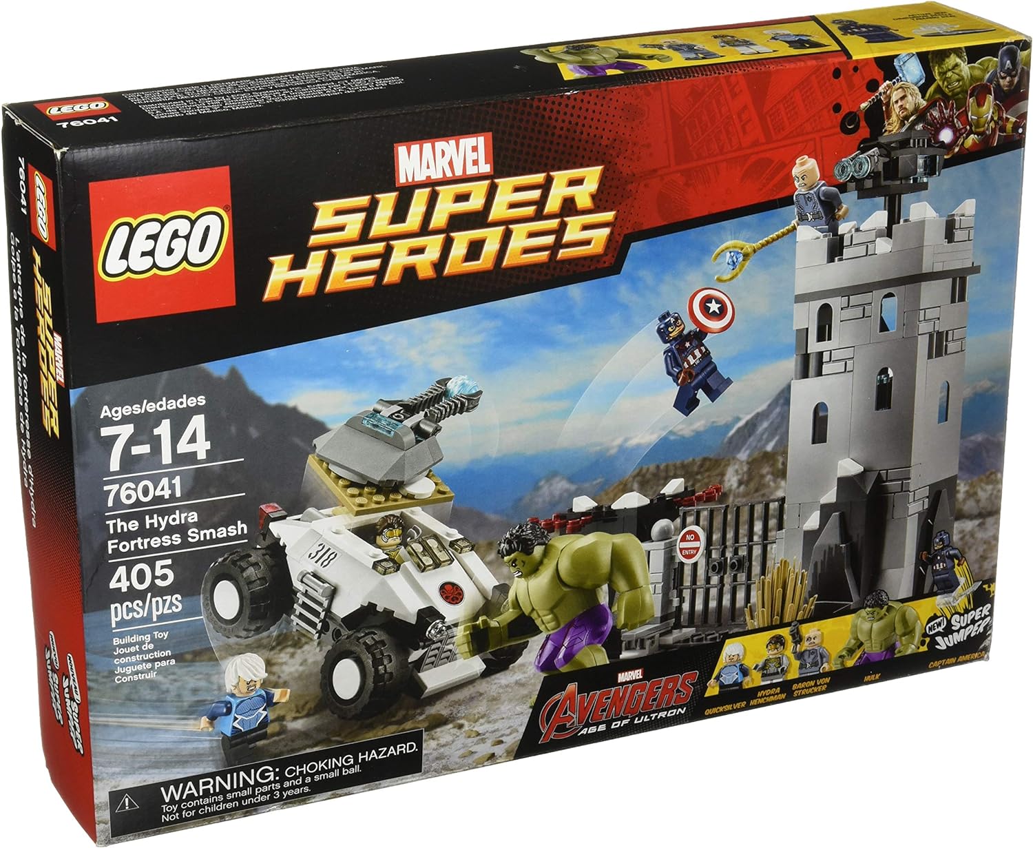 Join forces with the Avengers on a daring mission to recover the Loki Scepter from the Hydra Fortress! Face down the dangerous Hydra tank with Hulk, dodging its rotating cannonball shooter. Jump onto the tank to activate the roof explode function and send its cannon flying. Smash through the gates but beware of Baron Von Strucker’s gun and shots from the tower’s double stud shooter. Send super-jumping Captain America flying through the air to disable this powerful rooftop weapon, and then free the scepter with a perfect jump! Includes 4 minifigures with assorted accessories: Captain America, Hydra Henchman, Quicksilver and Baron Von Strucker with a weapon, plus a Hulk figure. Includes 4 minifigures with assorted accessories: Captain America, Hydra Henchman, Quicksilver and Baron Von Strucker with a weapon, plus a Hulk figure Hydra Fortress features gates with explode function, lookout point, tower, rooftop rotating double stud shooter with disable function and a power vault for the Loki Scepter with explode function Hydra tank features a cockpit for Hydra Henchman with removable roof, rotating cannonball shooter and roof explode function Includes Baron vonStrucker’s weapon Accessories include Captain America’s Super Jumper and shield Place the Hydra Henchman in the tank cockpit Evade shots from the Hydra tank’s rotating cannonball shooter Jump onto the tank with Hulk to activate the exploding roof function Smash through the gate Dodge shots from the fortress tower’s double stud shooter Launch super-jumping Captain America to take down the tower’s artillery Free the Loki Scepter with a perfect jump Hydra Fortress measures over 7” (20cm) high, 9” (24cm) wide and 5” (13cm) deep Hydra tank measures over 3” (8cm) high, 4” (12cm) long and 3” (8cm) wide Hulk figure stands over 2” (7cm) tall