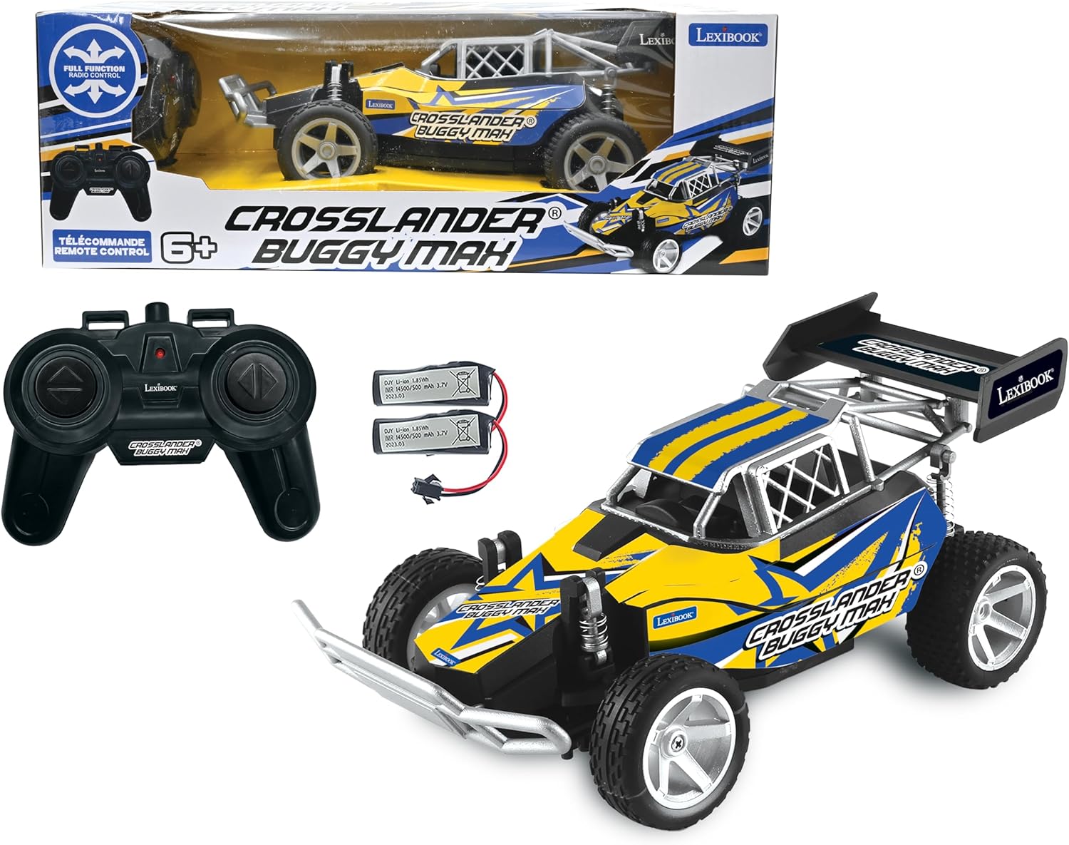 Embark on an unrivaled off-road adventure with the Lexibook Crosslander® Buggy Max, the radio-controlled off-road buggy that’s engineered for speed and maneuverability. With the ability to reach up to 9 mph, this RC22 model promises heart-pounding thrills in a variety of terrains. The Crosslander® Buggy Max is not just any radio-controlled off-road buggy; it’s a testament to high-quality engineering and design. Its robust 2.4 GHz wireless remote control offers precision steering for tight turns and high-speed escapades. The rechargeable blue and yellow buggy comes with a second spare battery, ensuring that the action never stops. Charge one while you blaze trails with the other and enjoy a full 36 minutes of exhilarating playtime. The Lexibook Crosslander® Buggy Max is a marvel in both performance and aesthetics with its striking colour combination and detailed 1:18 scale design. Whether you’re a hobbyist or a serious RC enthusiast, this radio-controlled off-road buggy stands out from the crowd. It’s not just a toy; it’s a statement of speed and freedom. Choose the Lexibook Crosslander® Buggy Max for an unmatched, adrenaline-fueled RC experience that will have you ruling every track and trail.