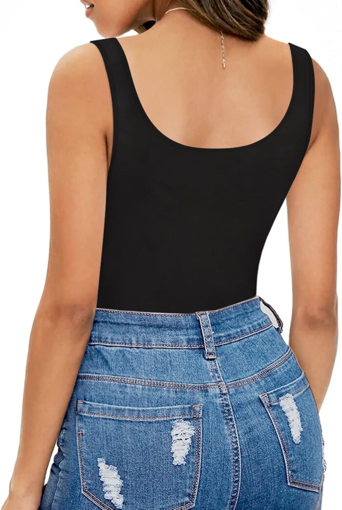 MANGOPOP Womens Scoop Neck Sleeveless Tank Top Bodysuits Sexy Backless Ribbed Body Suits Jumpsuit