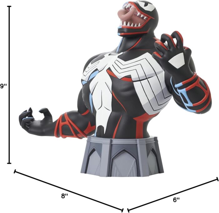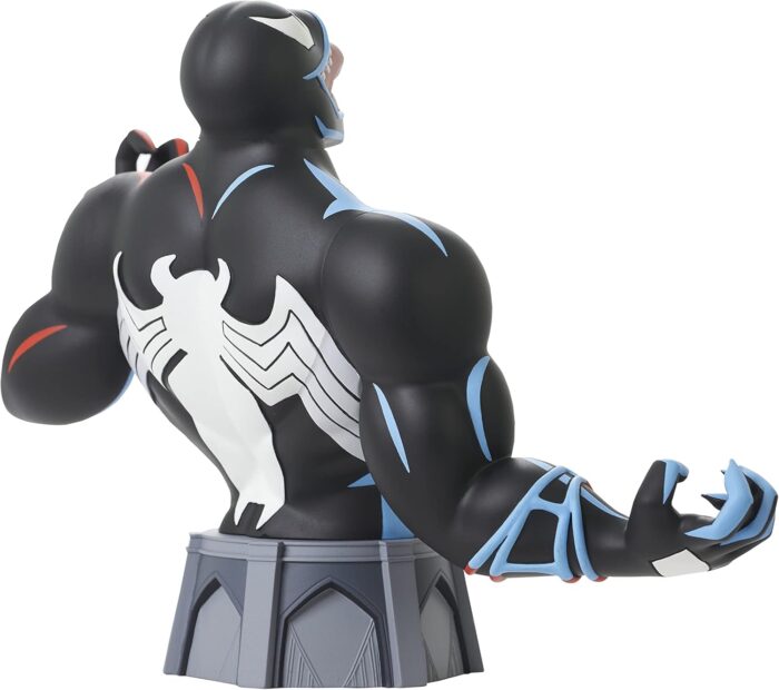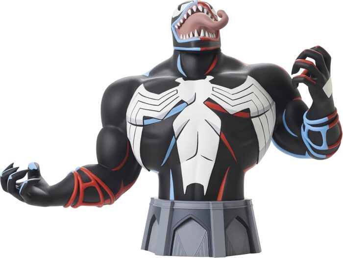 A Diamond Select Toys release! Look out, Spider-Man! Spinning out of the 1990s classic Spider-Man: The Animated Series, this 1/7 scale mini-bust of Venom captures him in his animated appearance, and he’s ready to feast on Spidey’s brains! This approximately 6-inch mini-bust is limited to only 3000 pieces and comes packaged in a full color box with a numbered certificate of authenticity. Designed by Barry Bradfield, sculpted by Paul Harding!