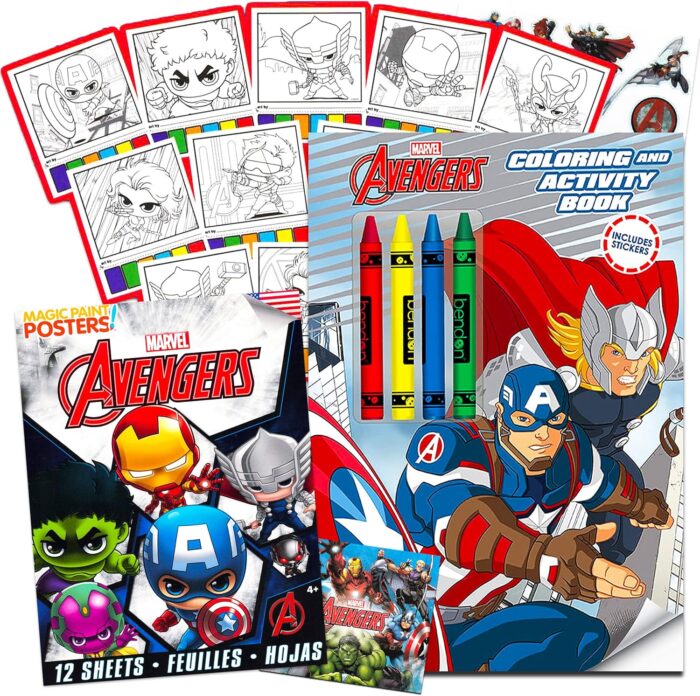 Marvel Avengers Coloring and Painting Packs for Kids Toddlers Bundle ~ Avengers Coloring Book and Painting Posters with Avengers Stickers (Avengers Party Supplies)