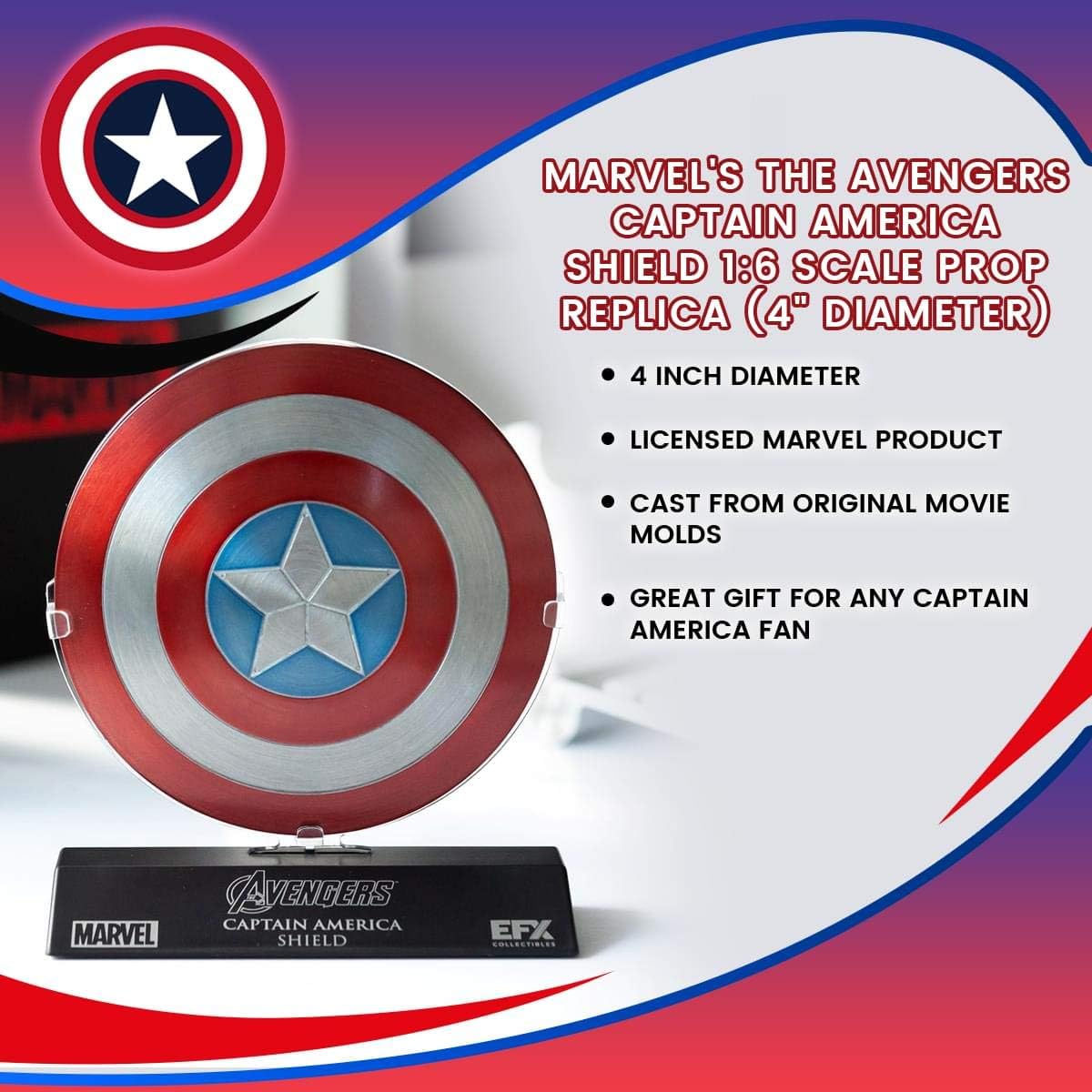 FAITHFUL SCALED-DOWN REPLICA: This metal Captain America shield was crafted using the same mater patterns cast from the original molds used for the movie prop