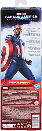 With this Titan Hero Captain America action figure, kids can imagine stepping into an exciting, heroic world as Sam Wilson! In the latest movie from Marvel Studios, Captain America makes new allies to stop a force unlike any he’s seen before. Kids will be inspired to let their super hero imaginations soar with their very own 12-inch-scale Captain America toy with updated movie-inspired design and deco. Figure also includes the iconic Captain America shield accessory for even more exciting pretend battle play against the super-strong and evil Red Hulk. Figure is packaged in an exclusive, Marvel-branded display box and makes a great addition to an Avengers toy collection. Look for more Captain America action figures and toys inspired by Marvel Studios’ Captain America Brave New World. (Each sold separately. Subject to availability.) Copyright MARVEL. All trademarks and registered trademarks are the property of their respective owners. HASBRO and all related trademarks and logos are trademarks of Hasbro, Inc.