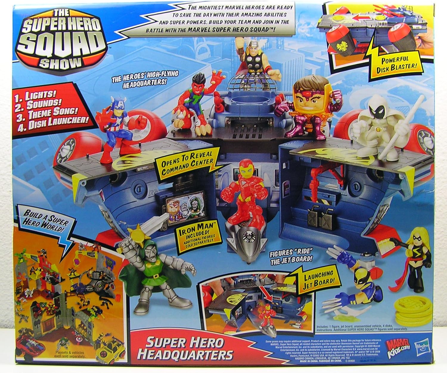 Super Hero Headquarters: The heroes’ high-flying Headquarters. “Take command” of your team of heroes with this awesome Super Hero Headquarters playset. Open the playset to reveal an exciting command center where lights, sounds and even the theme song music make you feel like you’re right in the middle of real life hero action.