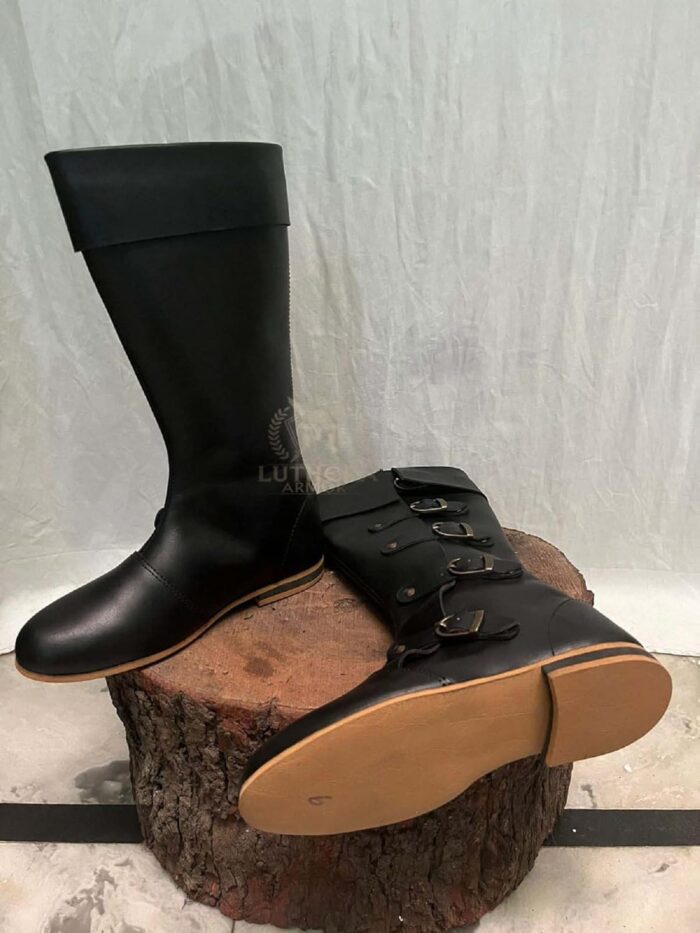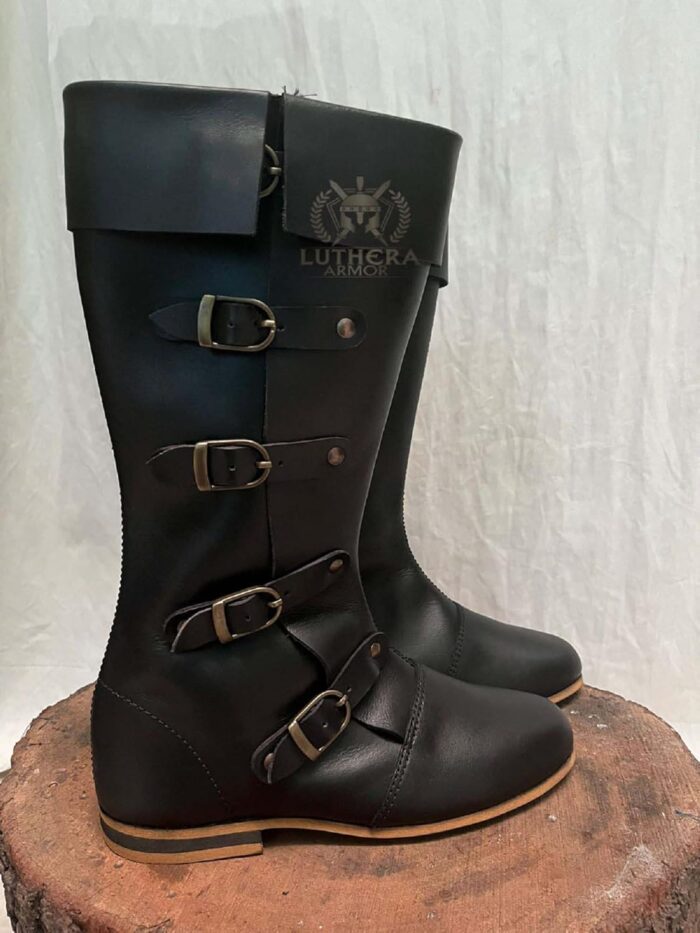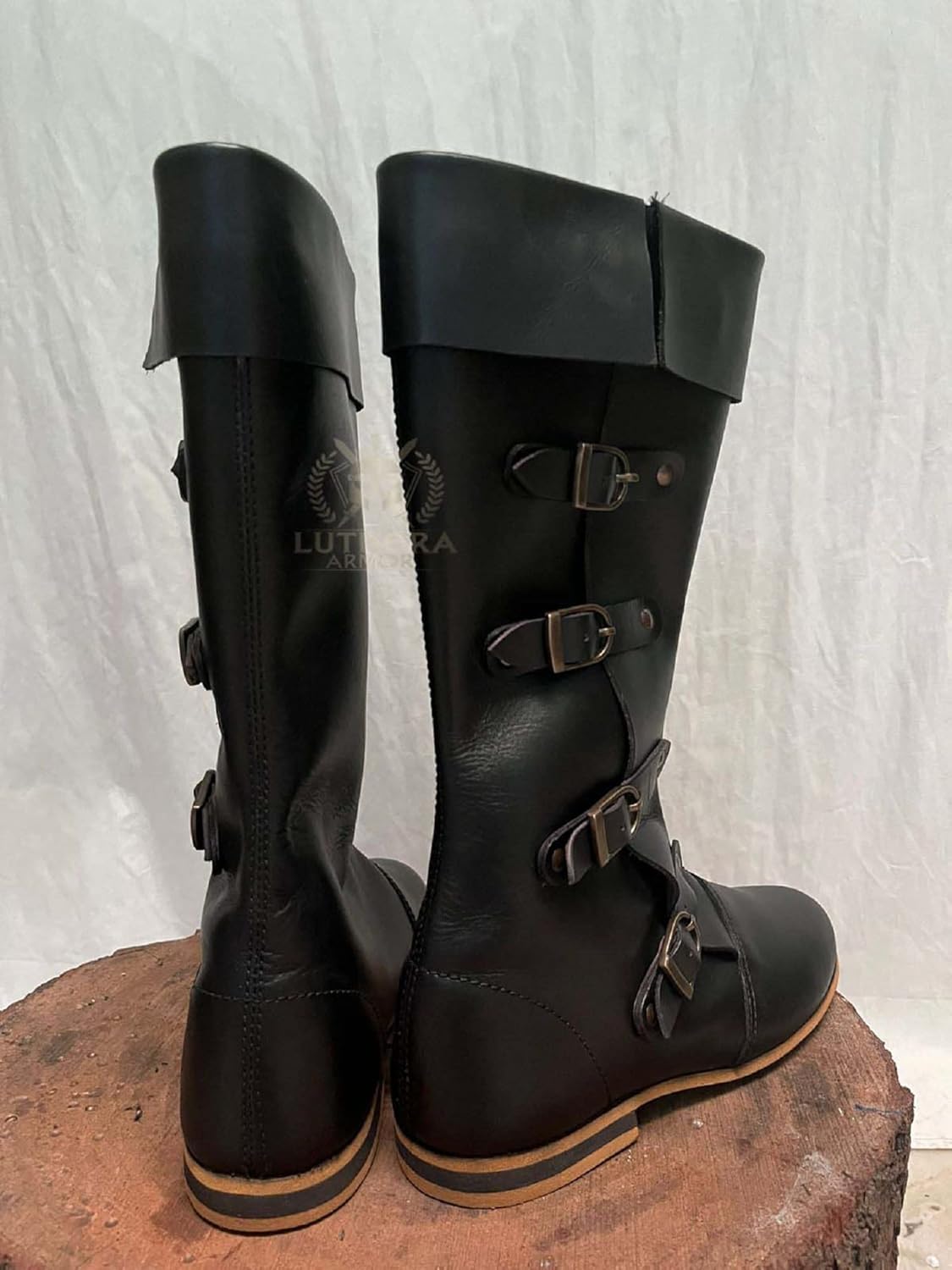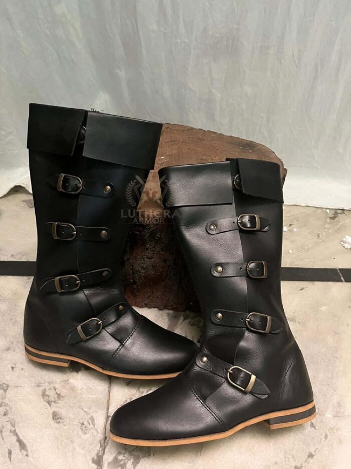 Medieval Leather Boots with 4 Buckle Re-enactment Men’s Shoe.