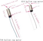 Both 614 and 716 hollow cup motors are matched with the same propeller: red, 2 pieces, black, 2 pieces, mini UAV blade length 46MM/1.81 inch, shaft diameter 0.8 mm /0.03 inch;