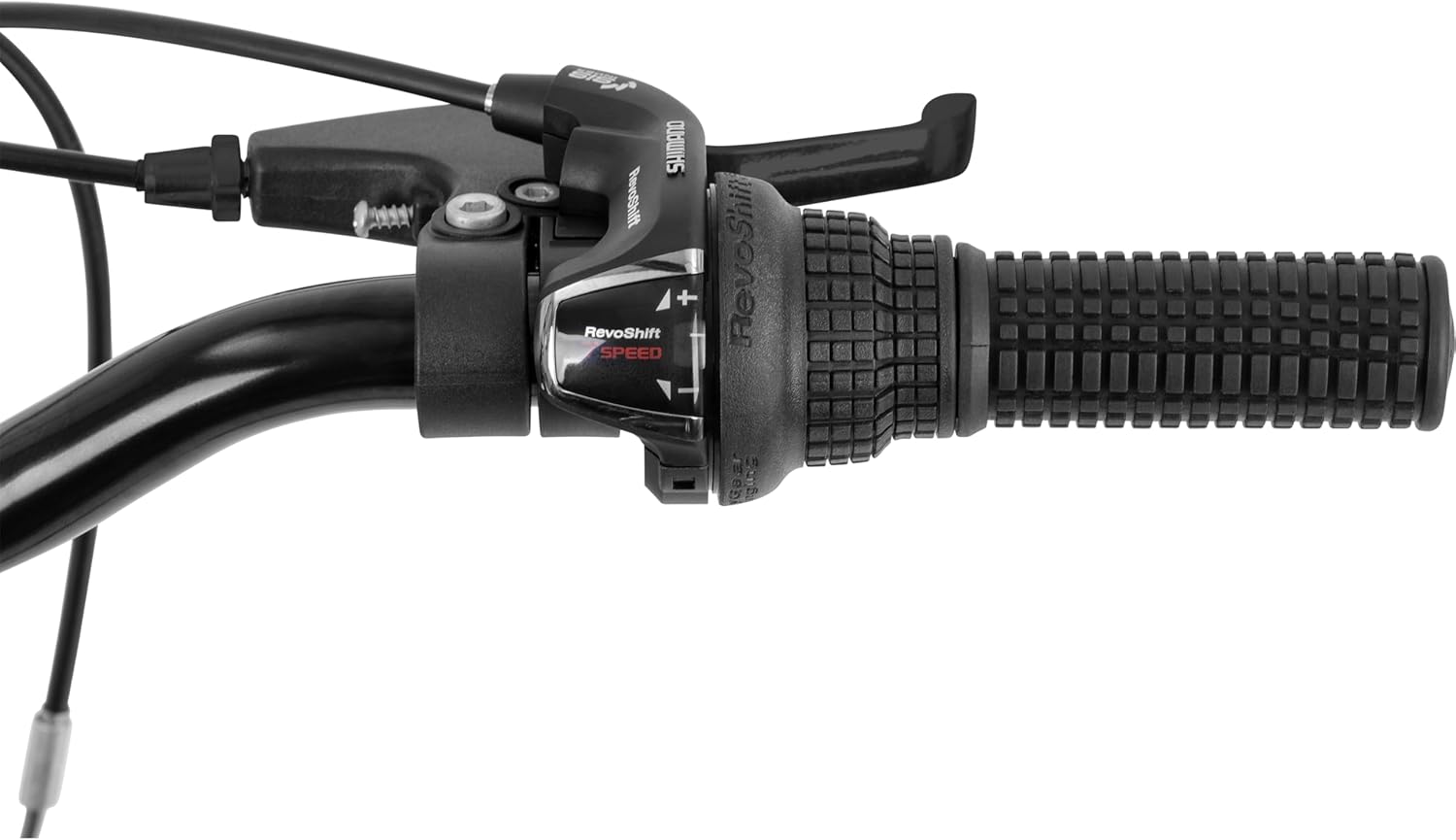 7-Speed Drivetrain They’ll tackle the hills and flats of the cul-de-sac while learning how to shift and adjust the bike’s resistance for a comfortable ride on varying inclines.