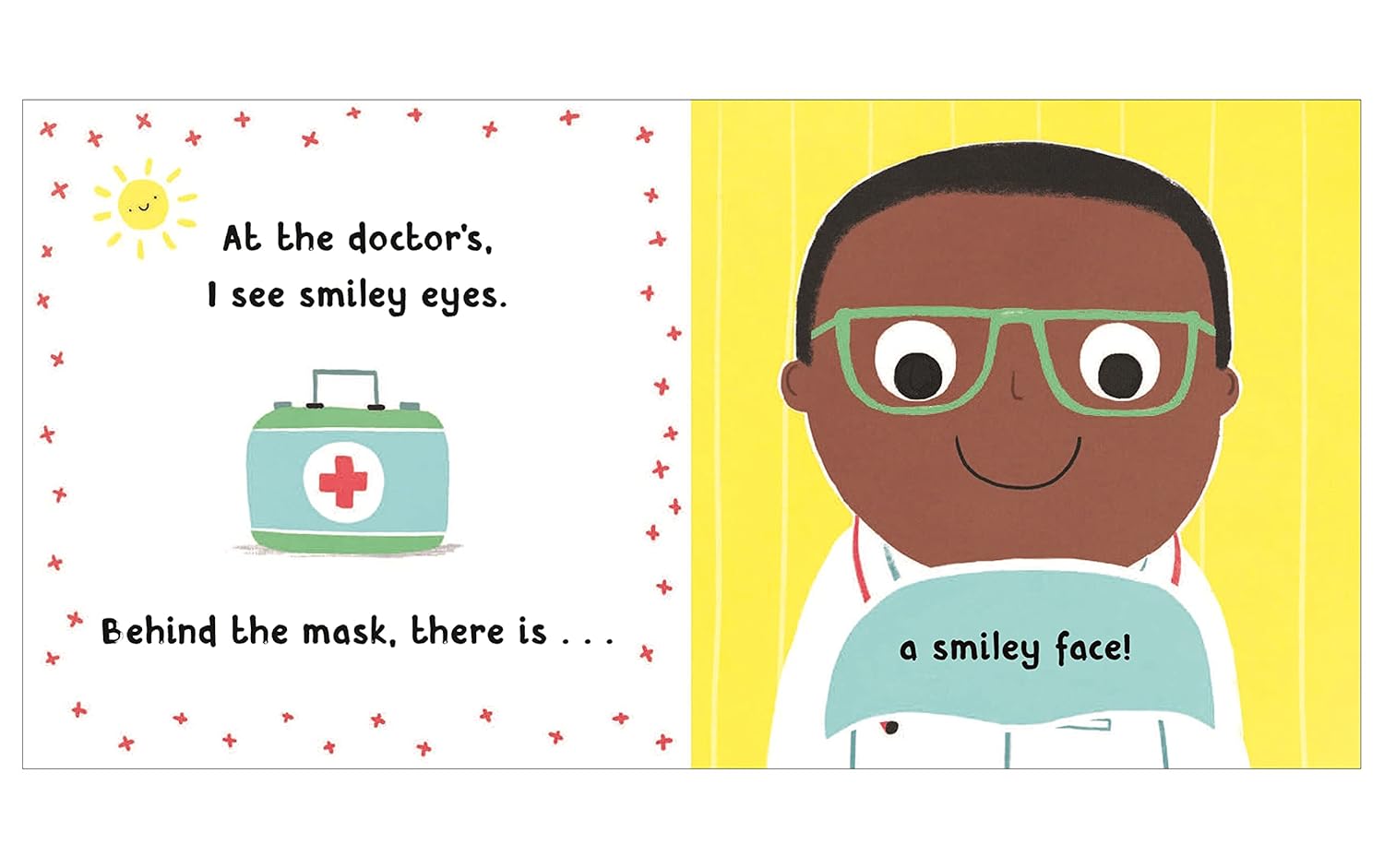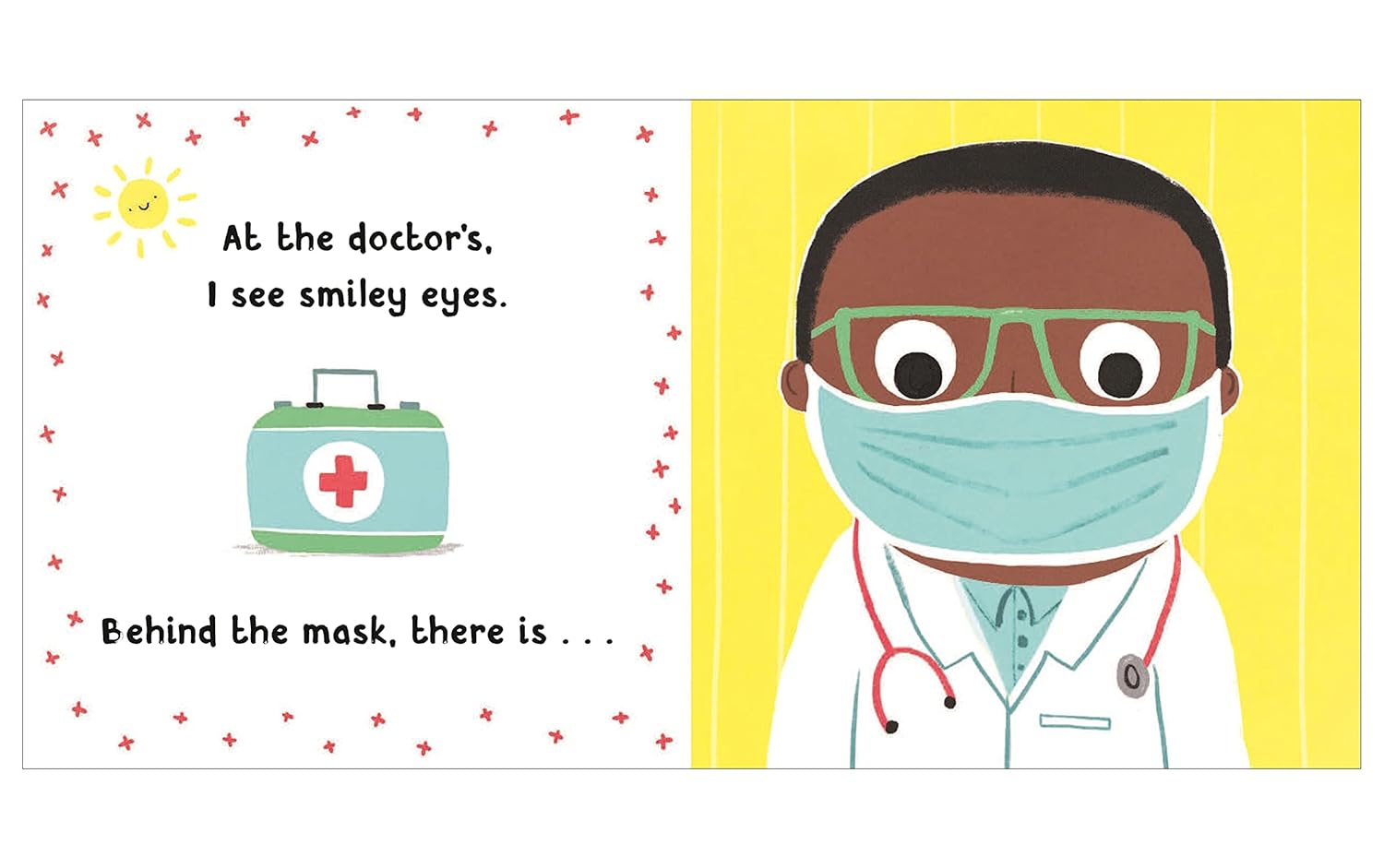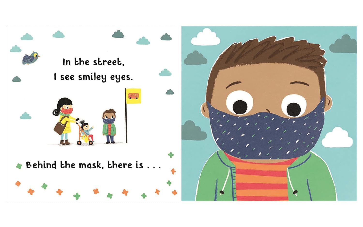In Smiley Eyes, Smiley Faces, toddlers can take an interactive tour through the town, meeting different face-mask-wearers along the way. Toddlers can then lift the mask-shaped flaps to reveal the smiley faces underneath the bright, colourful masks. They can even lift their own mask at the end of the day with the surprise mirrored finale!
