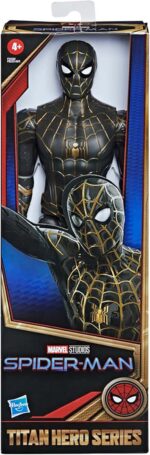 MOVIE-INSPIRED 12-INCH SCALE BLACK AND GOLD SUIT SPIDER-MAN FIGURE: This Titan Hero Series figure features design inspired by the Spider-Man movie, part of the Marvel Cinematic Universe