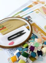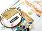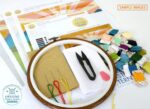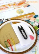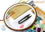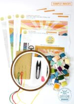 The KIT contains: 1x Embroidery hoop, 1x 16 Count AIDA fabric in White, Set of Threads, 3x Needles, 1x Needle threader, 1x Embroidery clippers in Black, Color counted patterns printed on A3 format paper