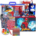 Spiderman Stationery Set for Boys – 3 Pc Bundle with Spiderman Art Set in Bag, Temporary Tattoos, and More | Spiderman Art Kit Tote Bag with Stickers, Coloring Pages, and More. This Spiderman art set for boys comes with 1 Spiderman stationery set with coloring pages and coloring utensils in a convenient Spiderman tote. Perfect for any young Spiderman fan, the Spiderman art tote bag stationery set will provide hours of creative entertainment for kids at home or around town. Use the Spiderman art kit as part of a superhero gift set or give it away as Spiderman party favors at your next Marvel or Avengers themed birthday party. Officially licensed Spiderman stationery and arts and crafts supplies for kids. The Spiderman art tote bag also comes with bonus Avengers temporary tattoos and a superhero door hanger.