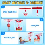 Active Play, Active Mind: Outdoor flying toys for kids ages 4-8 8-12 with a simple pull of the string, the flying disc takes off, reaching up to 20 feet in the air! This encourages kids to get outside, run around, and engage in healthy physical activity, which is crucial for their development; Plus, trying to catch that flying Jett as he descends helps with hand-eye coordination